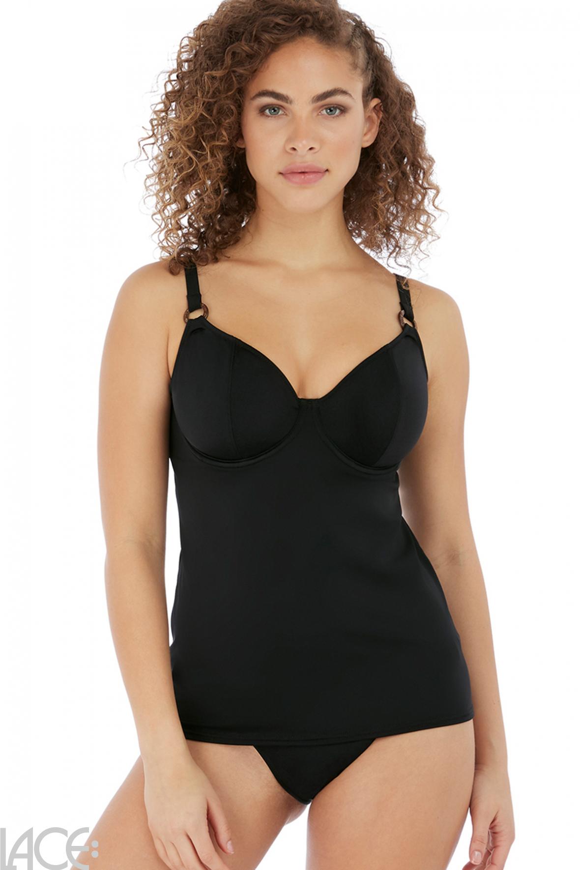 Pasform, støtte og funktion. Det er nøglen til undertøj, der sidder perfekt og får dig til at føle dig bedre tilpas ... Freya Swim Coco Wave Tankini Top F-J skål tilhører varegruppen Tankini top og indgår i kollektionen Coco Wave. Produktet har følgende varenummer AS7007_black=94d hos Freya Swim og indeholder materialerne Polyester 32%, Recycled Polyester 32%, Polyamid 19%, Elastan 17% og fåes i farverne .